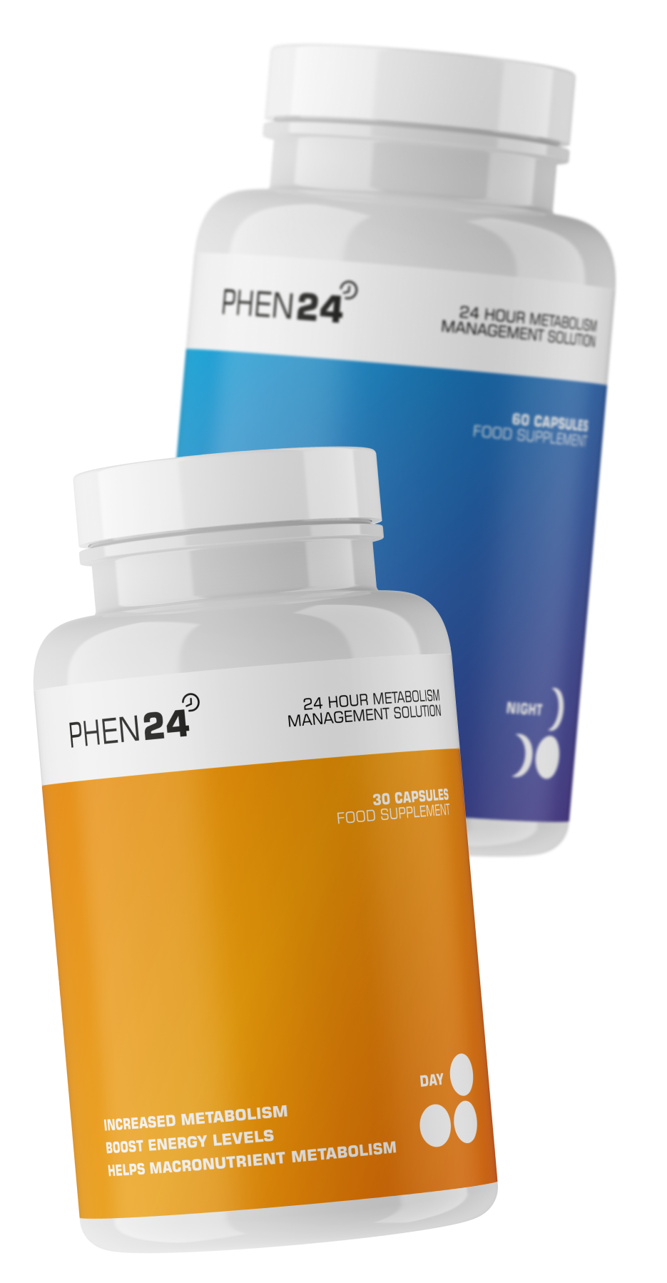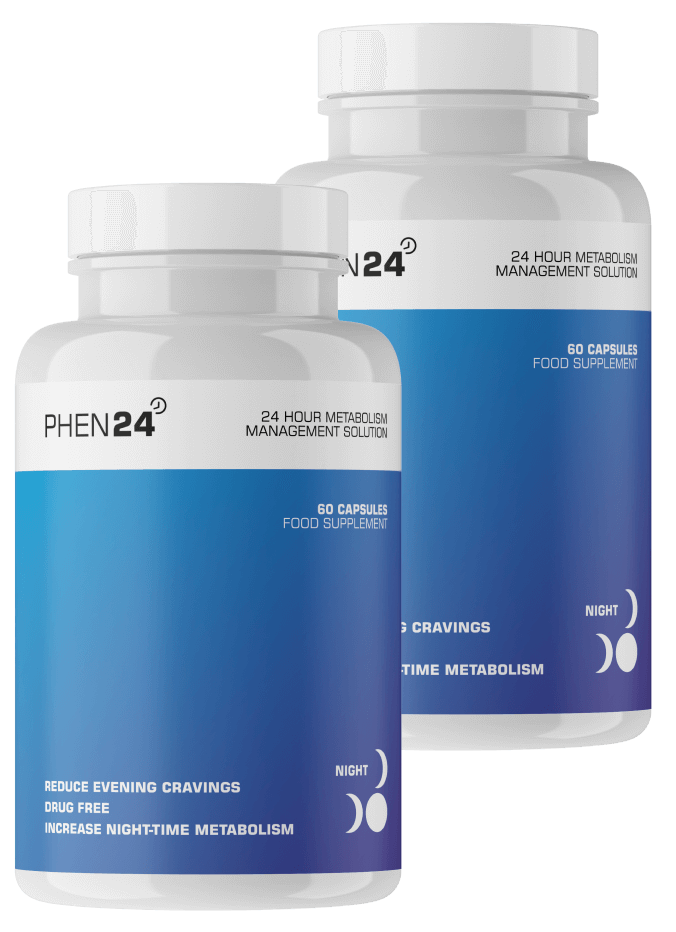 PHEN24 DAY should be taken each morning with your breakfast. For PHEN24 NIGHT, you will need to take four capsules, which should be consumed 15 minutes before your evening meal, with 1 to 2 glasses of water. Because PHEN24 NIGHT doesn't contain stimulants, your sleep won't be interrupted.