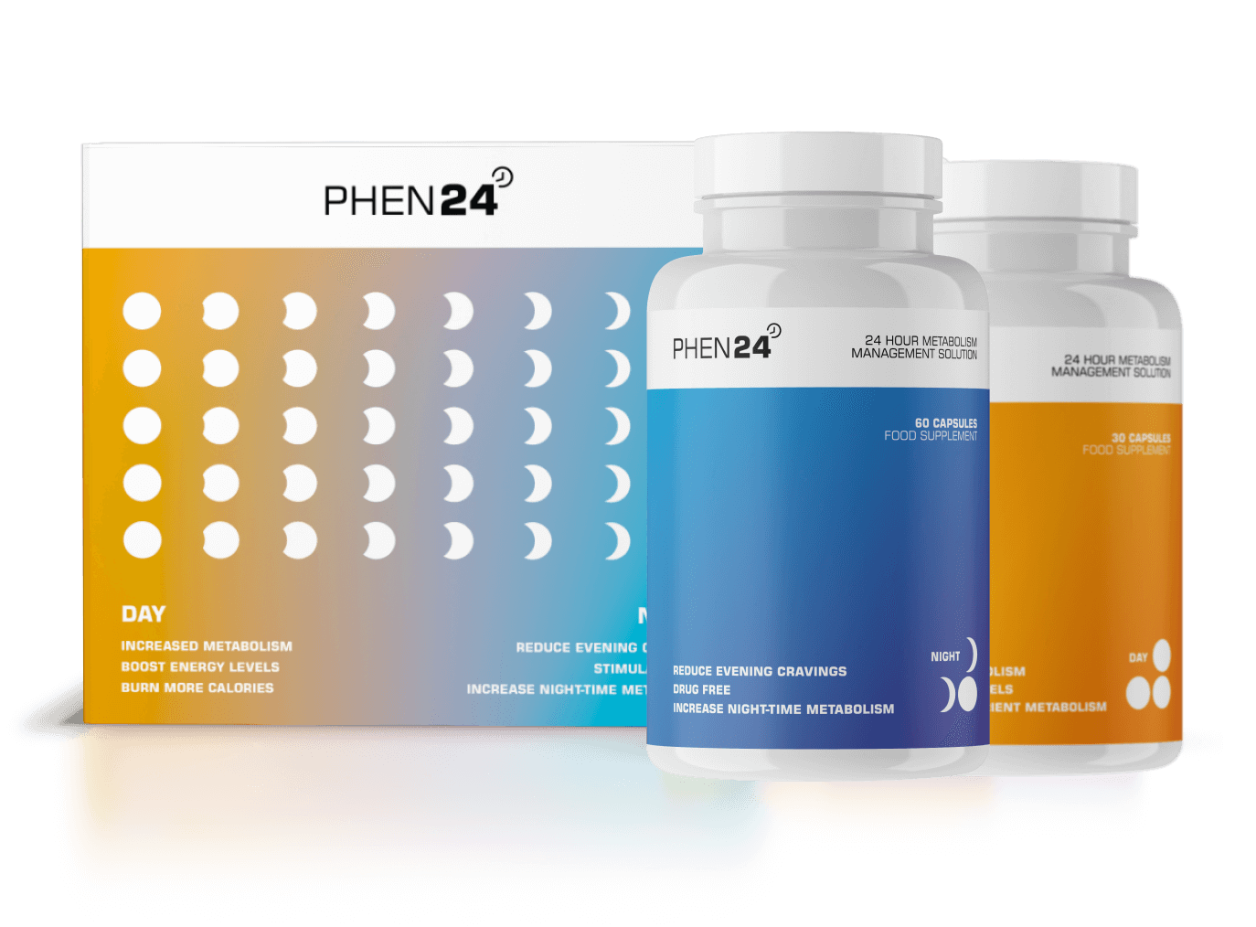 Each box contains a 30 day supply of Phen24 Day and Night capsules.